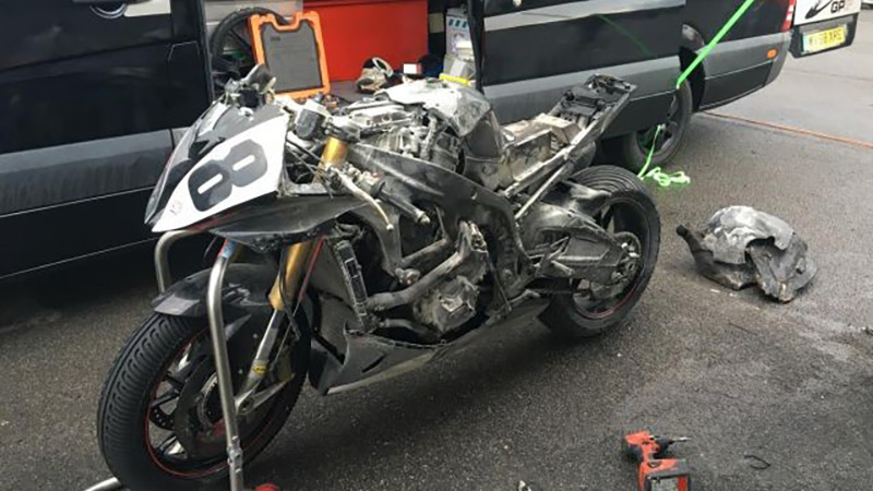 The very comical Dominic Herbertson in 2015 got a new BMW S1000rr for the 2016 season, unfortunately, his 3rd time out at Croft circuit in April saw him have an unfortunate off, which caused the new bike to go up in spectacular flames!